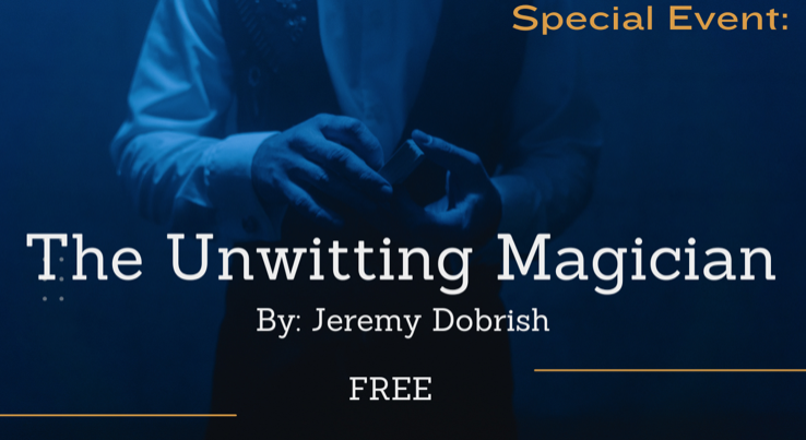 The Unwitting Magician, by Jeremy Dobrish, is a unique theatrical and magical one-night-only experience. A lone actor steps onto a bare stage—armed with little more than a music stand and a sealed manila envelope. Inside: a script they have truly never seen, its contents a complete mystery. The actor has no idea what sort of play or theatrical experience may unfold. As the actor reads the script to the audience he (or she) is swept into a whirlwind of impossible feats and playful surprises, becoming an unwitting magician and inviting the audience to question who is truly in control—the performer, the script, or something more magical still?